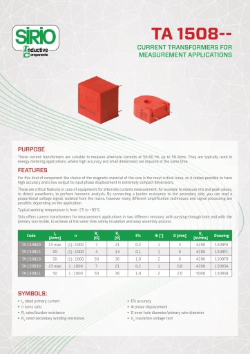 Karta katalogowa przekładnika na skanie.