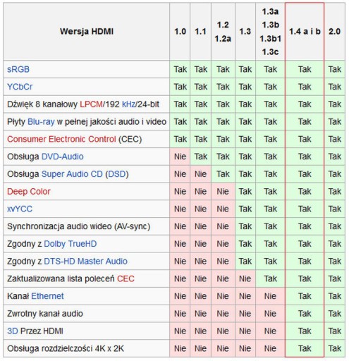 - sRGB, YCbCr, xvYCC, Depp Color - obsługuje