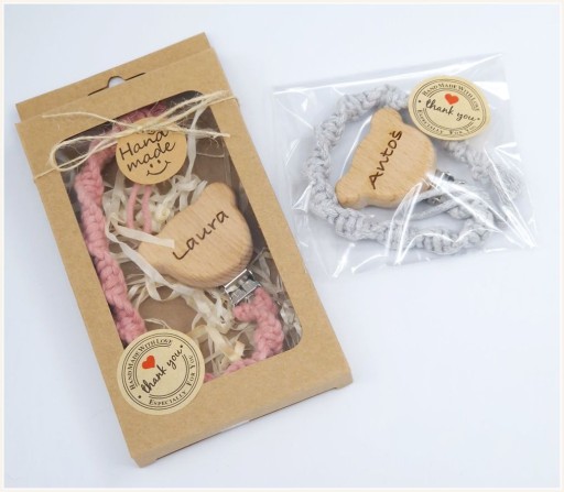 - zapięcie metalowe (ząbki zabezpieczone plastikowymi osłonkami, dzięki czemu nie uszkodzi ubranka) z drewnianym elementem ozdobnym (Miś, Gwiazdka, Serce, Kwiatek, Autko)