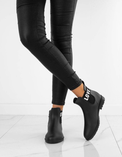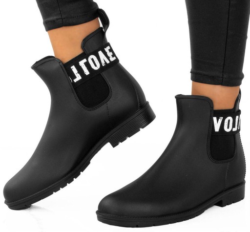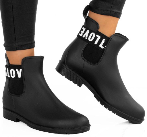 6797 KALOSZE CZARNE BOTKI KRÓTKIE Z GUMĄ NAPISY 38