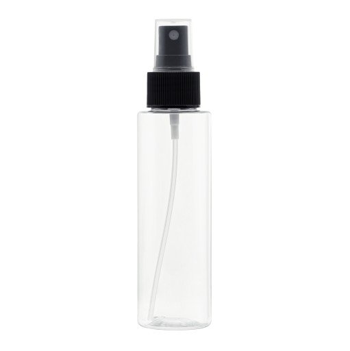 Butelka z tworzywa PET z atomizerem o pojemności 100 ml, do kosmetyków lub płynu czyszczącego, odporna na alkohol. Dzięki niewielkim wymiarom można ja nosić przy sobie lub trzymać pod ręką w samochodzie.