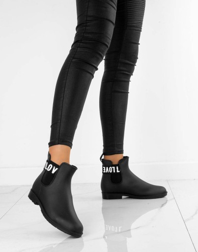 KRÓTKIE MATOWE KALOSZE Z GUMĄ BOTKI Z NAPISAMI 37