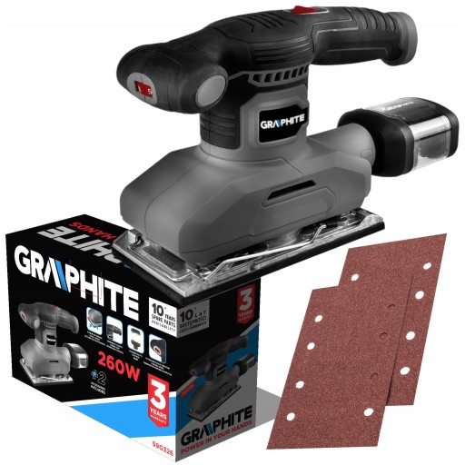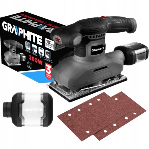 ГРАФИТОВАЯ ШЛИФОВАЛЬНАЯ МАШИНА 260ВТ 90x187MM КОНТЕЙНЕР ДЛЯ БУМАЖНОГО ПЫЛЕСОСА 59G326