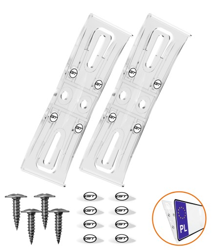 Kupujesz zestaw do mocowania 1 tablicy rejestracyjnej i zawiera: 2 uchwyty do tablicy rejestracyjnej, 4 śruby montażowe, 8 naklejek antypoślizgowych.