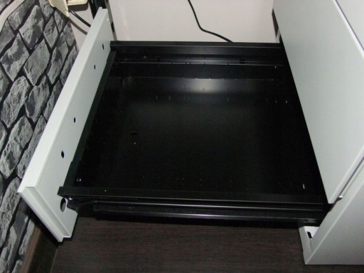 - szuflady zamykane na kluczyk ( w zestawie 1 kluczyk), szuflady na rolkach,
