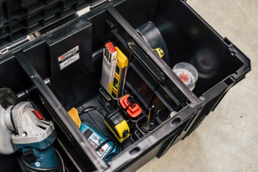 Skrzynia wyposażona jest w dwie regulowane przegrody – jedną klasyczną oraz drugą przegrodę Multi, która dzięki zróżnicowanym uchwytom na narzędzia ręczne pozwala w łatwy sposób utrzymać porządek wewnątrz skrzyni. Dodatkowo, wyjmowana przegroda Multi może pełnić rolę samodzielnego nosidła na narzędzia.