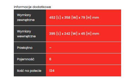 - Wymiary zewnętrzne (długość x szerokość x wysokość): 450x358x80mm