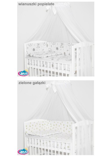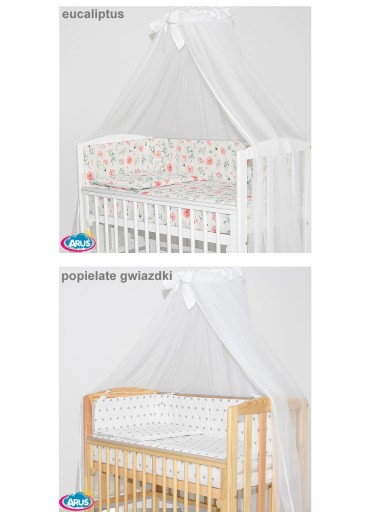 7. Ochraniacz na szczebelki 180 x 20 cm – sztywny i gruby ochraniacz wykonany z prasowanej wlokniny , która zapewnia bardzo skuteczną ochronę przed uderzeniami główni dziecka o szczebelki. Ochraniacz mocowany jest troczkami, które wykonane są z tej samej tkaniny, która posłużyła do szycia pościeli. Ochraniacz jest dwustronny moze byc wiec zakladany wg wlasnego uznania