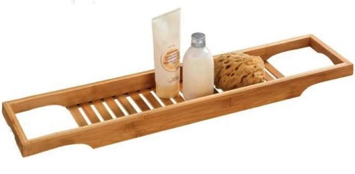 Bambusowa półeczka na wannę może posłużyć zarówno jako stojak na kosmetyki, jak i miejsce na rzeczy mające na celu umilenie kąpieli.