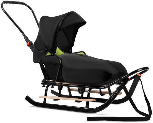 1. Sanki kolor czarny z śpiworkiem czarno - zielonym