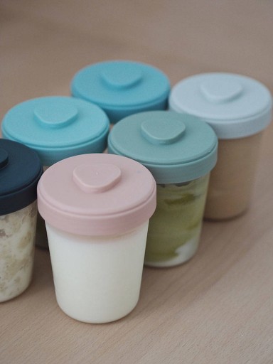 Zestaw słoiczków do porcjowania i przechowywania jedzenia francuskiej marki BEABA. W skład kompletu wchodzi sześć słoiczków o pojemności 250 ml. Pojemniczki mają czytelną skalę i specjalne miejsca (na pokrywce i z boku pojemnika) na zapisanie daty i ich zawartości. Można w nich wygodnie przechować, odmierzać i transportować taką ilość żywności, jaka jest w danym momencie potrzebna dziecku. Pojemniki nadają się również do zamrażania i podgrzewania w mikrofali oraz w Babycooku®. Hermetyczna pokrywka pozwala zachować smak i aromat jedzenia. Pojemniczki wyposażone są w system CLIP, tj. wypukłą część na pokrywce i wklęsłą, pasującą kształtem, na dnie pojemniczka, co pozwala na łączenie ze sobą pojemników. Sczepienie w pionie pełnych pojemniczków zapobiega ich spadaniu jeden z drugiego i ułatwia ich przechowywanie. Z kolei puste pojemniczki można przechowywać, wkładając jeden w drugi i łącząc ze sobą pokrywki.