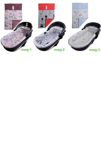 Kołderka - kocyk jest idealnym uzupełnieniem wózka. Wykonana jest z jednej strony z bawełny z zakładką z milutkiej dzianiny minky lub velvet a z drugiej strony w całości z minków / velvetu. Wewnątrz niej znajduje się ocieplacz 120g/m2 dzięki któremu dziecku będzie ciepło