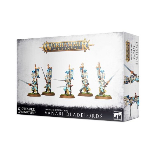 The kit is comprised of 48 plastic components, with which you can assemble 5 Vanari Bladelords, with an option for assembling one as a male or female Seneschal armed with a Sunmetal Greatblade or Sunmetal Dual Blades. These models are supplied with 5x Citadel 32mm Round Bases.