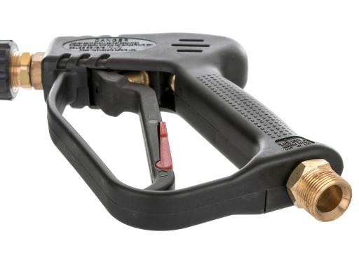 Pistolet wykonany z wysokiej jakości podzespołów, przystosowany do pracy z ciśnieniem do 345 bar. Wyposażony w gwint przyłączeniowy M22x1.5 (od strony lancy oraz węża ciśnieniowego).