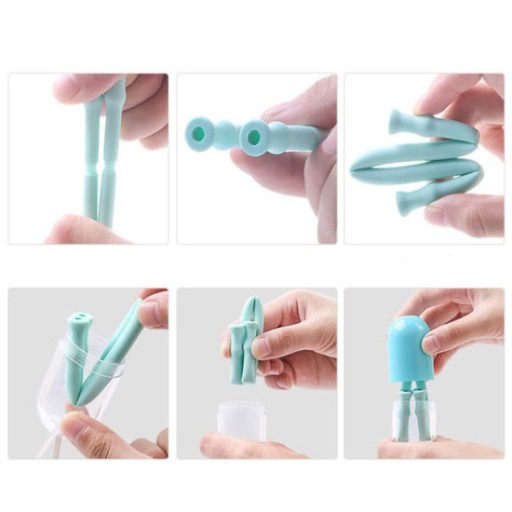 Jeżeli chcesz zacząć ekologiczny styl życia lub zastąpić wielorazowe słomki podawane w barach i kawiarniach swoją, to jest produkt dla Ciebie. Prezentujemy Państwu świetny ekologiczny gadżet, jakim jest składana słomka wykonana z silikonu. W zestawie sprzedawana z etui / zawieszką, które pozwoli nam mieć ją zawsze ze sobą oraz czyścikiem, który utrzyma ją zawsze w idealnej kondycji.