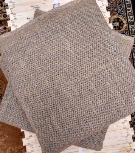 Proponujemy poduszki ocieplające do uli. Poduszki są wykonane z filcu i dodatkowo obszyte tkaniną bawełnianą. Takie połączenie pozwala na ograniczenie przepływu powietrza, ale go nie blokuje. Dzięki temu że mata jest obszyta tkaniną jutową, może być stosowana nawet bezpośrednio na ramki. Grubość ocieplenia to ok 3cm. Poduszka pasuje do ula wielkopolskiego 10 ramkowego.