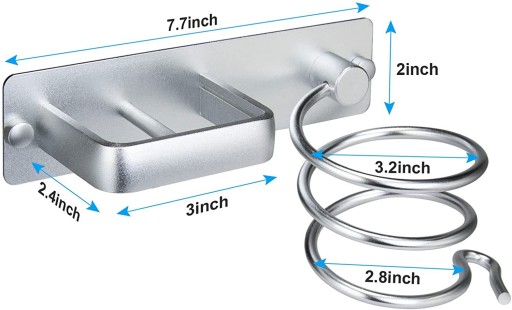 🌠Universal Size Design - Spiralna konstrukcja uchwytu na organizery łazienkowe, odpowiednia dla większości rozmiarów suszarek do włosów, trwała i wykwintna. Idealnie ozdobi Twój dom, salon fryzjerski i salon fryzjerski.