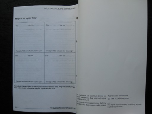 U mnie kupujesz oryginalną książeczkę wydaną przez Volkswagena (środek z odnośnikami w kolorze niebieskim !) !