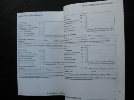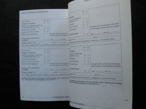 Polska książka serwisowa (przeglądów) do samochodów