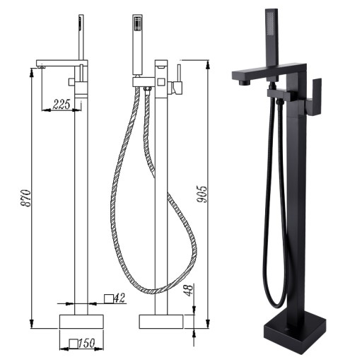 Baterię najlepiej montować do wanien jako wannowa stojąca.