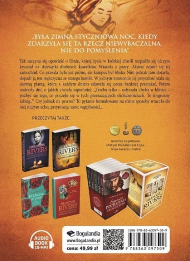 Była zimna styczniowa noc, kiedy zdarzyła się ta rzecz niewybaczalna, nie do pomyślenia. Tak zaczyna się opowieść o Dinie, której życie w krótkiej chwili rozpadło się niczym kryształ na dziesiątki drobnych kawałków. Wracała z pracy... Akurat zepsuł się jej samochód... Co prawda było już późno, ale kampus był blisko... Nim jednak tam dotarła, dopadł ją ten mężczyzna ze starego kombi... W jednym momencie jej przyszłość stała się ciemną plamą, która z każdym dniem zdawała się coraz bardziej przerażać. Potem nadeszły dni, o jakich chciała zapomnieć. „Trzeba tylko – usłyszała chyba w klinice – pozbyć się tego, co poczęło się w tych przerażających okolicznościach... To niegroźny zabieg…" Czy jednak na pewno? To pytanie formułowane na różne sposoby wracało do niej niczym echo, przynosząc same wątpliwości… Czas trwania: 14h 19min. 40s. Czyta: Joanna Jędryka