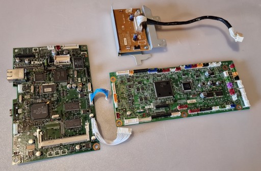 Przedmiotem sprzedaży jest elektronika (płyty sterujące widoczne na zdjęciach) do drukarki Brother MFC-9450CDN.
