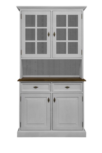 Kredens mały kuchenny dostarczany w dwóch elementach-witryna+komoda. Bardzo łatwy montaż. Wystarczy ustawić witrynę na komodzie ,wkręcić dwie śrubki i gotowe.