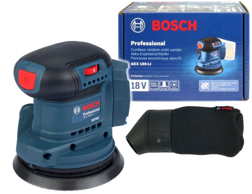 Szlifierka mimośrodowa GEX 185-LI firmy BOSCH przeznaczona do szybkiego i precyzyjnego szlifowania oraz polerowania różnego rodzaju powierzchni (płaskich i okrągłych) z drewna, metalu, tworzyw sztucznych, kamienia czy ceramiki, pokrytych farbą, lakierem, czy szpachlą.