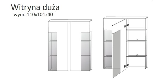 - duża witryna szer. 92 cm x wys. 196 cm x 40 cm (dołek witryny dużej + witryna duża),