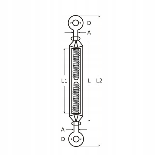 Regulacja naprężenia śrub rzymskich możliwa jest poprzez wkręcanie przeciwnie skierowanych do siebie gwintów znajdujących się w korpusie.