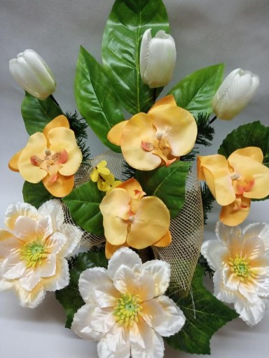- kwiaty sztuczne dobrej jakości- storczyk, tulipan, dalia