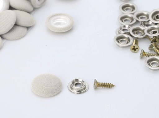 Materiałowy zaczep ma średnicę ok. 20 mm, długość śruby to 13-14 mm