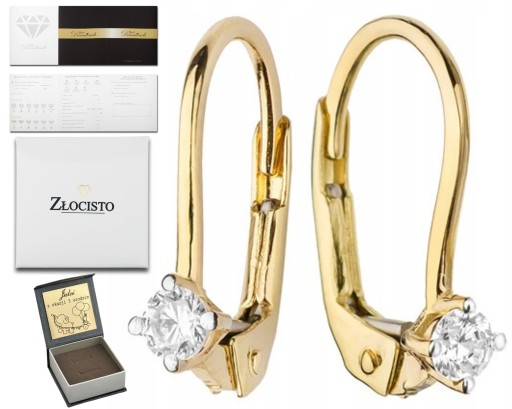 ZŁOTE KOLCZYKI Z DIAMENTAMI NA ANGIELSKIM ZAPIĘCIU
