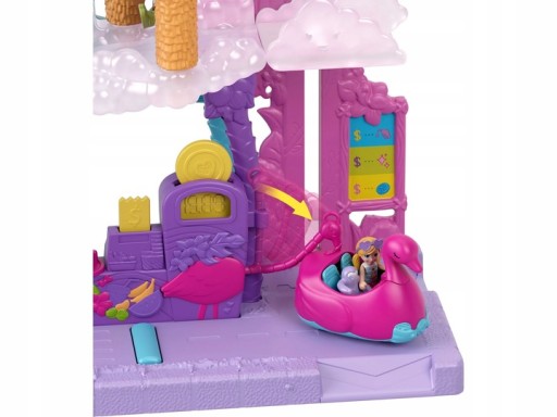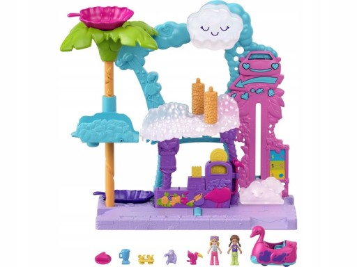 Zestaw Polly Pocket Tiny Treats Ice Cream Truck zawiera uroczą ciężarówkę z lodami z ponad 18 zabawkami, w tym lalkami Polly i Shani, figurką psa, klocki z przekąskami oraz ubrania i akcesoria.
