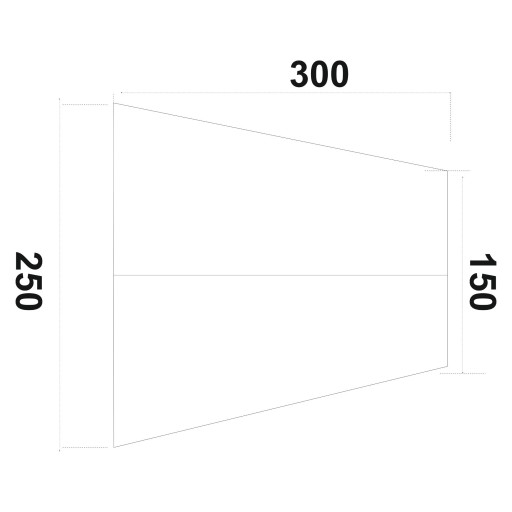 - wymiary: 300 x 150 x 250 x 300 cm (kształt równoramiennego trapezu);