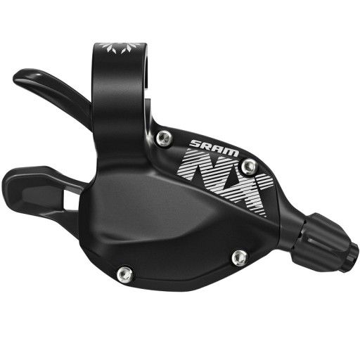 12-biegowa manetka Sram NX Eagle typu Trigger, dzięki zastosowaniu technologii Zero Loss, zapewnia natychmiastową i precyzyjna zmianę biegów. Ergonomicznie ukształtowane dźwignie są wygodne w obsłudze. Mocowanie MatchMaker X sprawia, że manetkę można zamontować bezpośrednio do dźwigni hamulcowych kompatybilnych z tym systemem, co stanowi rozwiązanie znane z wyższych grup. Dzięki dwóch punktom mocowania do uchwytu, produkt można przesuwać na boki.