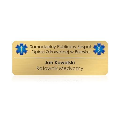 Identyfikator jest wykonany z trwałego laminatu grawerskiego
