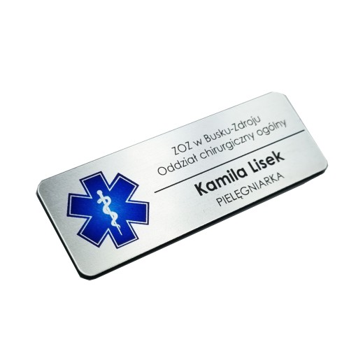 Identyfikator imienny z zapięciem na magnes z kolorowym nadrukiem UV