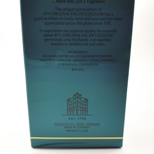 4711 to dość specyficzna nazwa jak na markę. Johann Maria Farina, włoski emigrant mieszkający w Niemczech, został okrzyknięty ojcem założycielem tej marki perfum. Jego pierwsze perfumy pojawiły się w XVIII wieku i dzięki niemu powstała firma Eau de Cologne. Po długich sporach toczonych w rodzinie, Farina doszedł do wniosku, że firmę nazwie 4711. Numer domu stał się dla niego inspiracją. Kompozycje zapachowe 4711 zawierają niezwykle charakterystyczny ponadczasowy aromat. Perfumy powstawały przy współpracy z takimi twórcami jak Geza Schoen, Cecile Hua, Alexandra Monet czy też Wilhelm Muelhens.