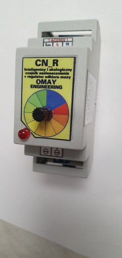 Należy doregulować f(sun) potencjometrem, zaświecona czerwona dioda informuje o włączeniu odbiornika mocy. Potencjometr w prawo zielone pole zmniejszamy czułość - musi być silne słońce aby załączyć, analogicznie potencjometr w lewo czerwone pole zwiększamy czułość czyli włączamy odbiorniki przy mniejszym słońcu. Maksymalne słońce maj - sierpień w godz. od 10 do 15. CN_R - 2 wyłącza odbiorniki np. gdy słońce zajdzie chmurą i fotowoltaika ładuje słabo, wtedy jeżeli mamy odbiorniki duże zaczynamy brać z sieci, analogicznie włącza gdy słońce mocno grzeje i fotowoltaika pracuje tak że oddajemy energię wtedy możemy pozwolić sobie na autokonsumpcję.