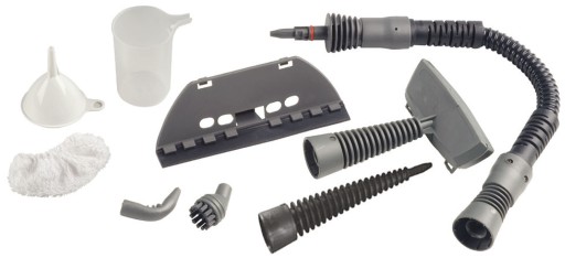 Prosta i zagięta dysza, twarda szczotka, mała okrągła szczotka, ściągacz do szyb, ściereczki - to tylko niektóre przydatne elementy tej myjki, które w niedługim czasie pozwolą Ci na błysk wyczyścić cały dom. Urządzenie szybko się nagrzewa i generuje gorącą parę wodną pod ciśnieniem 3 barów. To wystarczająca moc, by usunąć wszelkie zabrudzenia, nawet te znajdujące się w szczelinach, w zgięciach mebli lub na fugach.