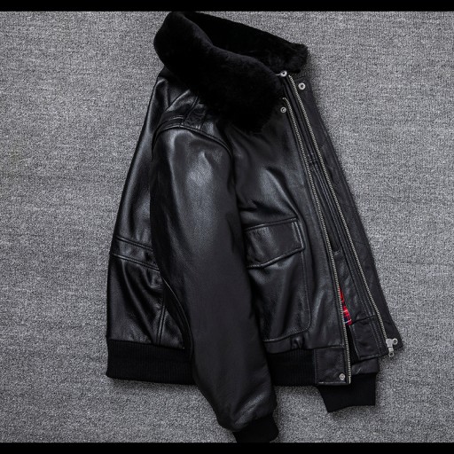 ЧЕРНАЯ КОЖАНАЯ ЗИМНЯЯ КУРТКА ВОЕННЫХ ВВС