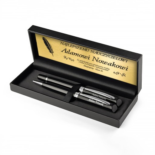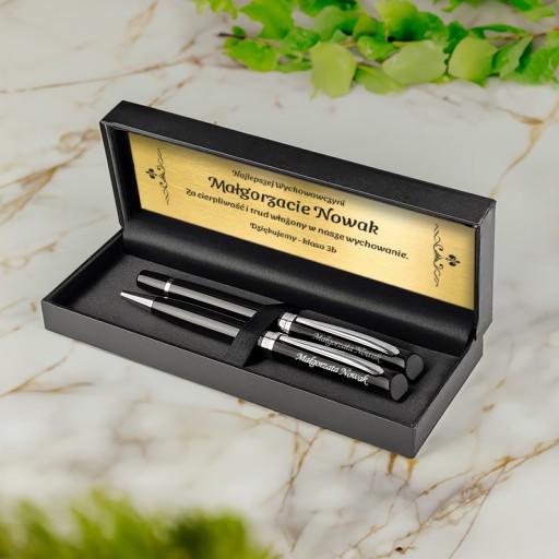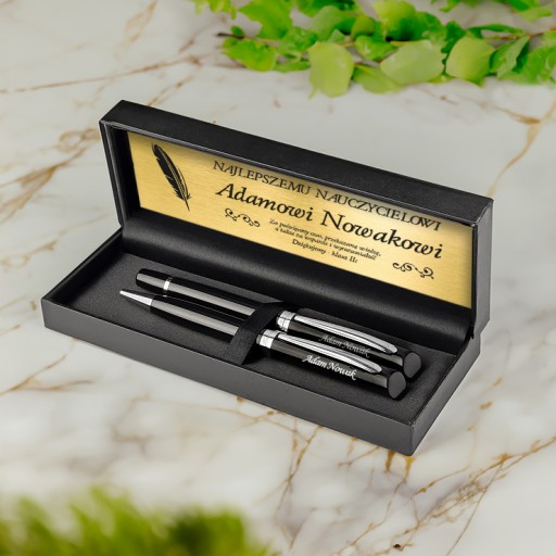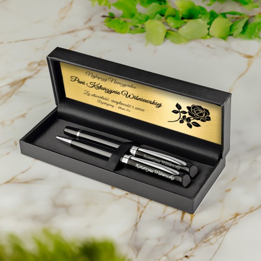 Spraw swojemu nauczycielowi lub nauczycielce gustowny prezent, wręczając personalizowany upominek w formie grawerowanego zestawu piśmienniczego z dedykacją.