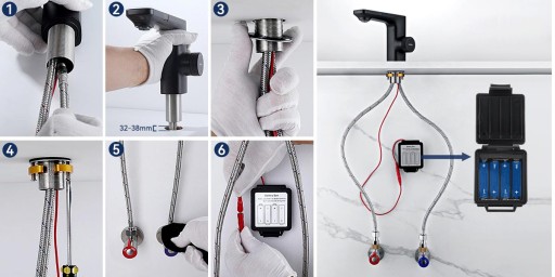 Бесконтактный смеситель для умывальника с двойными инфракрасными датчиками