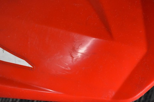Owiewka używana w stanie dobrym, posiada nieduże zarysowania oraz odłamany jest nieduży fragment przodu owiewki, uszkodzenia widoczne na zdjęciach.