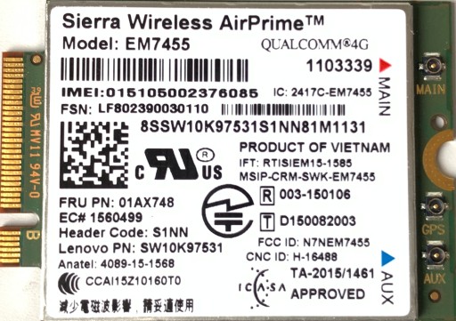 LTE 4G-модем EM7455 Lenovo Sierra AirPrime 01AX748
