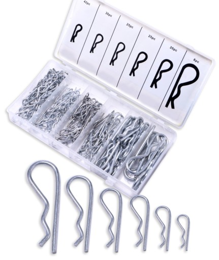 ✅ Zestaw zawiera zawleczki sprężynowe, rozginane o różnych wymiarach.