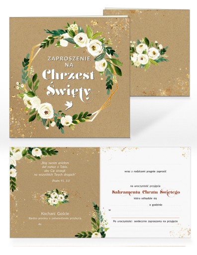 PIĘKNE ZAPROSZENIA NA UROCZYSTOŚĆ CHRZTU ŚWIĘTEGO, GOTOWE DO WYPEŁNIENIA w zestawie z kopertą.
