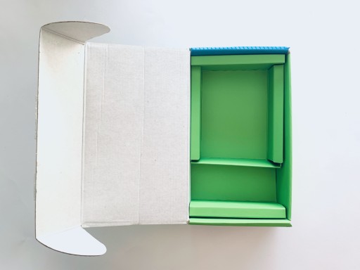 Pudełko nosi delikatne ślady zarysowań i zagięć spowodowanych transportem.