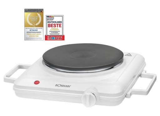 Kompaktowa, lekka i wydajna jednopalnikowa kuchenka firmy Bomann. Płyta grzewcza wykonana została z materiałów odpornych na działanie wysokiej temperatury dzięki czemu proces gotowania jest bezpieczny. Kuchenka idealnie sprawdza się w miejscach gdzie nie ma dostępu do gazu, np. ogródki działkowe czy kemping lub w sytuacji kiedy będziemy potrzebować dodatkowego palnika.